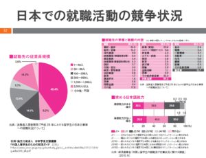 - 情報自分が知っている企業への就職エントリーをするため、競争が激しい。日本式の新卒一括採用の就職スケジュールを知らず、出遅れる。